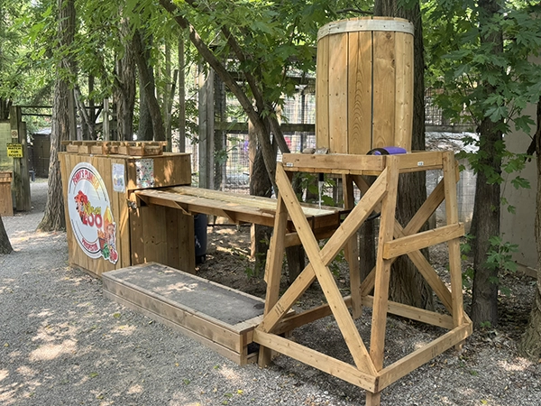 - WASHROOMS and WHEELCHAIRS – Wheelchair accessible washrooms are available in the parking lot area as well as handwashing stations and garbage cans. We do our best to provide a beautiful visit with wide solid gravel pathways that are accessible for strollers, wagons and wheelchairs as they will wind throughout the forest during your visit. But please keep in mind the animals and their enclosure are the main priority so some of the pathways will have roots which will be clearly marked for you as the paths were built around the enclosures. Wagon and stroller rentals are also available at the gift shop for the day.