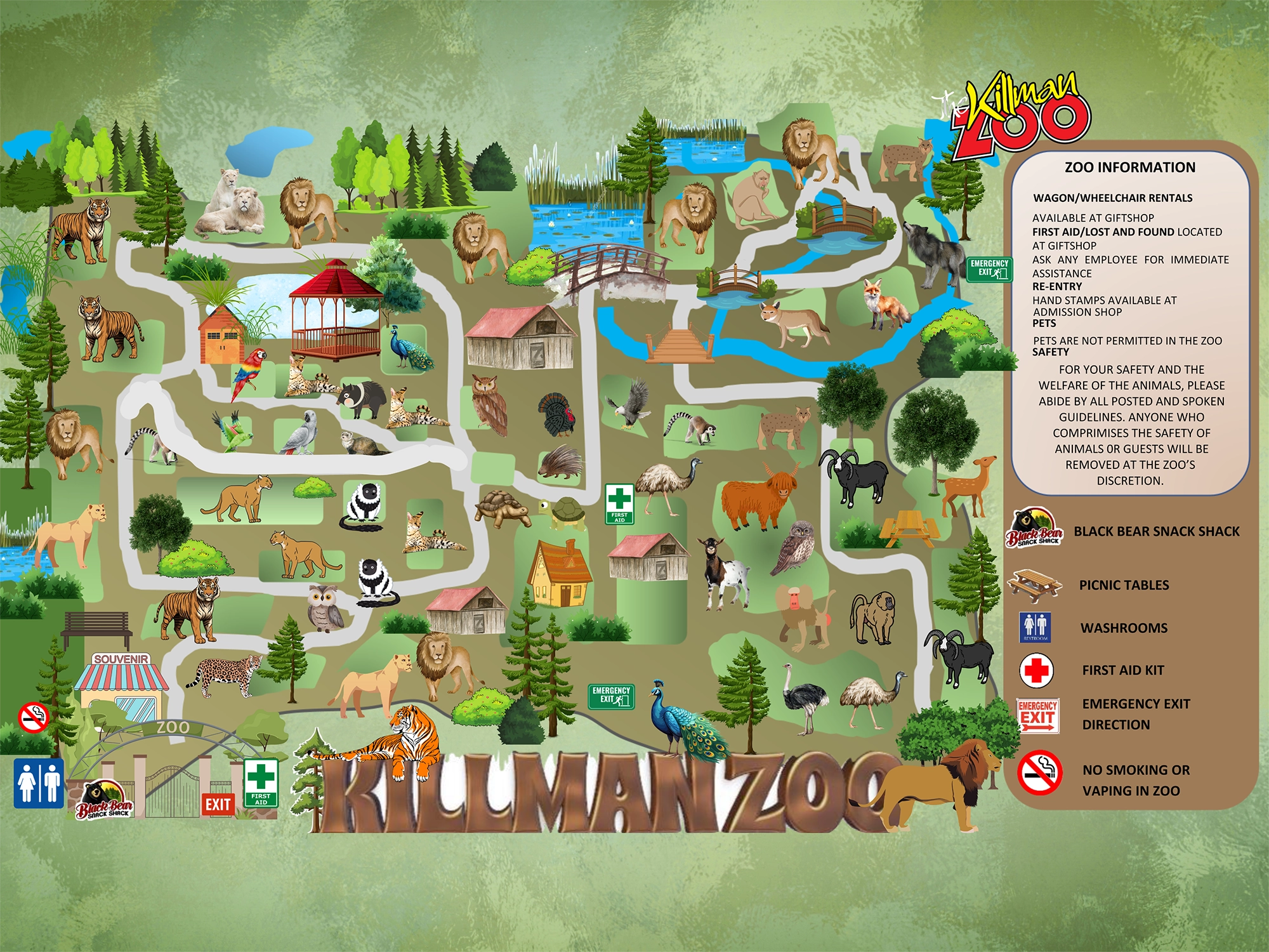 Killman Zoo staff, guests and the animals in our care deserve an environment free from abusive or inappropriate behaviour. If found in violation of any of these policies, engaging in verbal or physical harassment, discriminatory or threatening behaviour or otherwise towards our guests, staff or animals. We reserve the right to refuse admission to and or revoke without a refund the season’s pass and escort any individual or group out of the zoo if they are endangering our animals, staff or guests. We encourage all our visitors to enjoy the zoo in a safe and respectful manner.